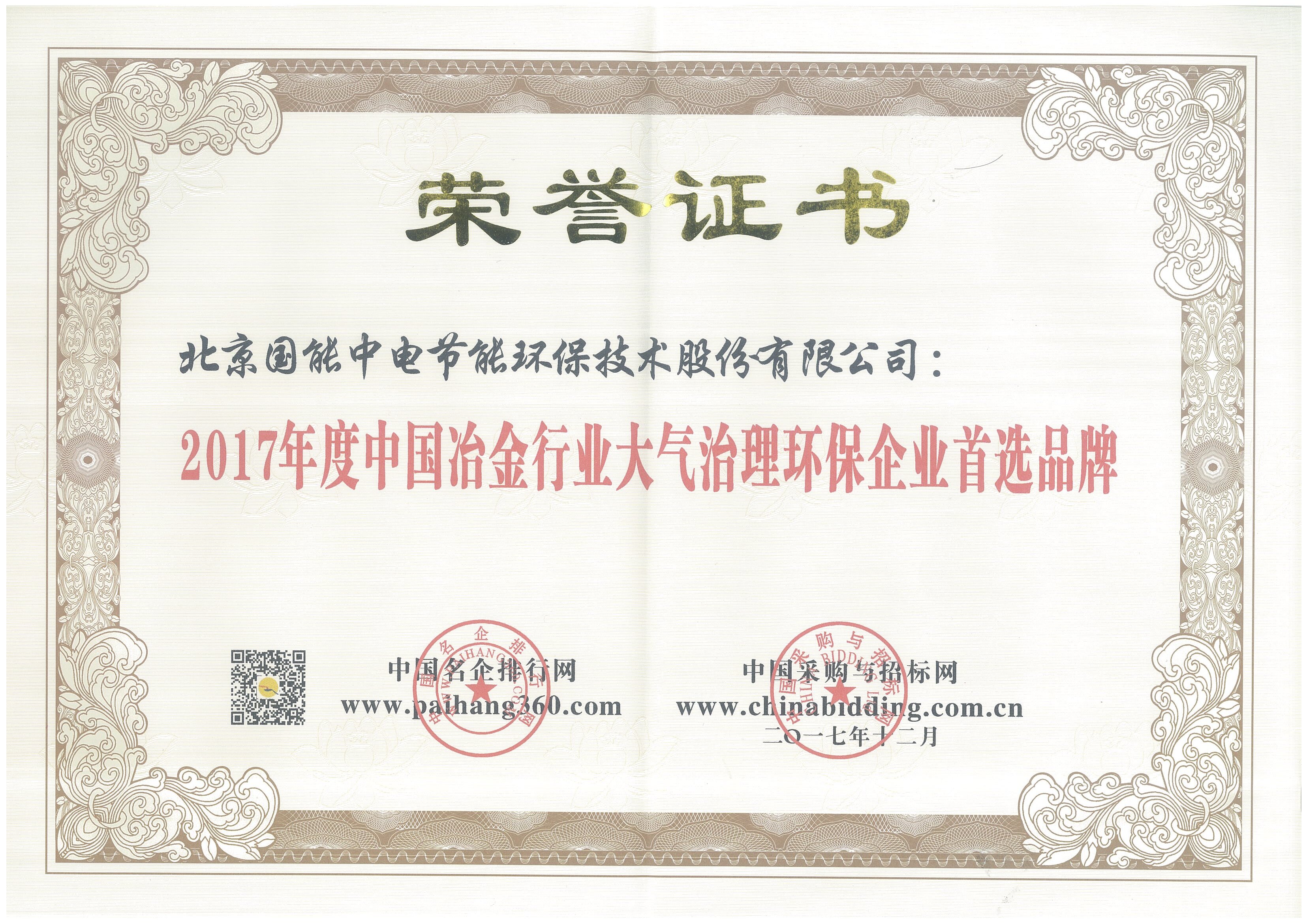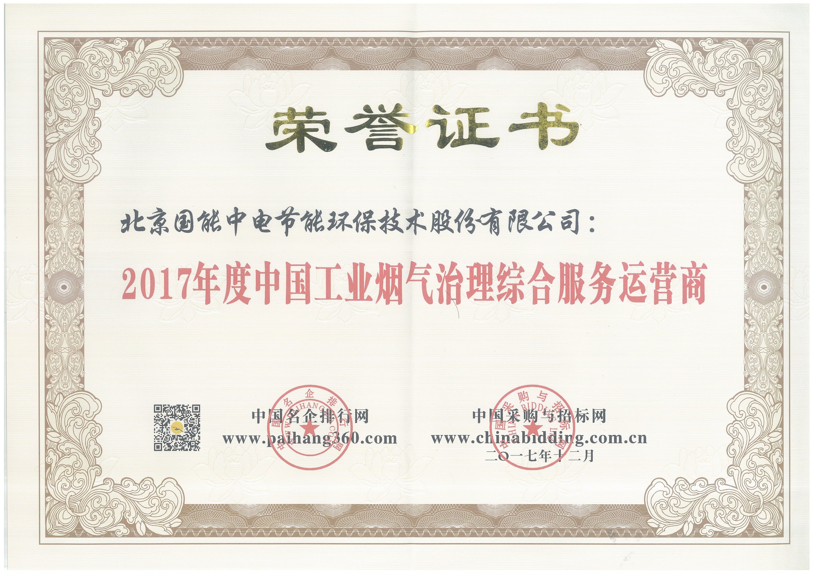新年伊始,北京國能中電節(jié)能環(huán)保技術股份有限公司喜報頻傳,在采購與招標網(wǎng)舉辦的“2017年中國大氣治理招標采購綜合評價活動”中榮獲五項大獎: